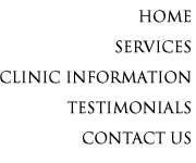 Home | Services | Clinic Info | Testimonials | Contact Us